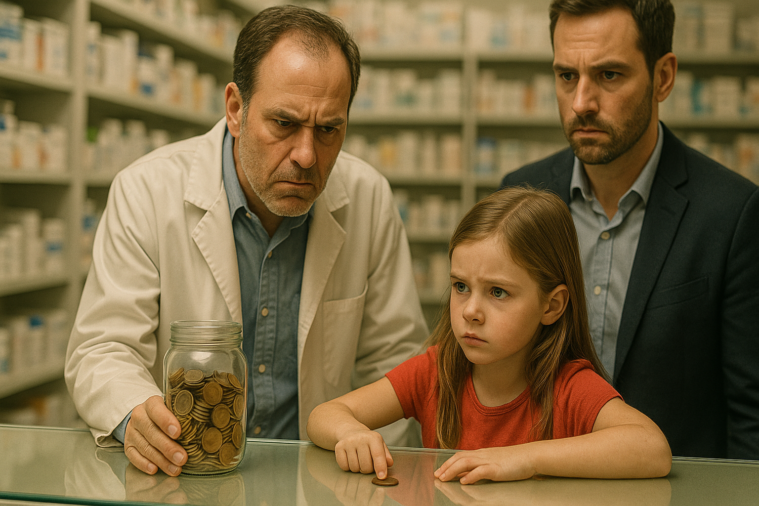 Fetița s-a dus în dormitorul ei și a scos borcanul cu mărunțiș din ascunzătoare. A răsturnat toate monedele pe podea și le-a numărat cu atenție — de trei ori, ca să fie sigură. Apoi le-a pus la loc în borcan, l-a strâns în brațe și a ieșit pe ușa din spate. Destinația ei: farmacia din apropiere.