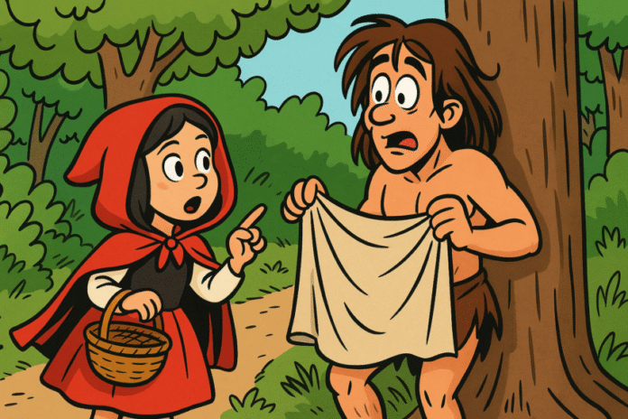 Scufița Roșie mergea voioasă prin pădure, în drum spre bunica.